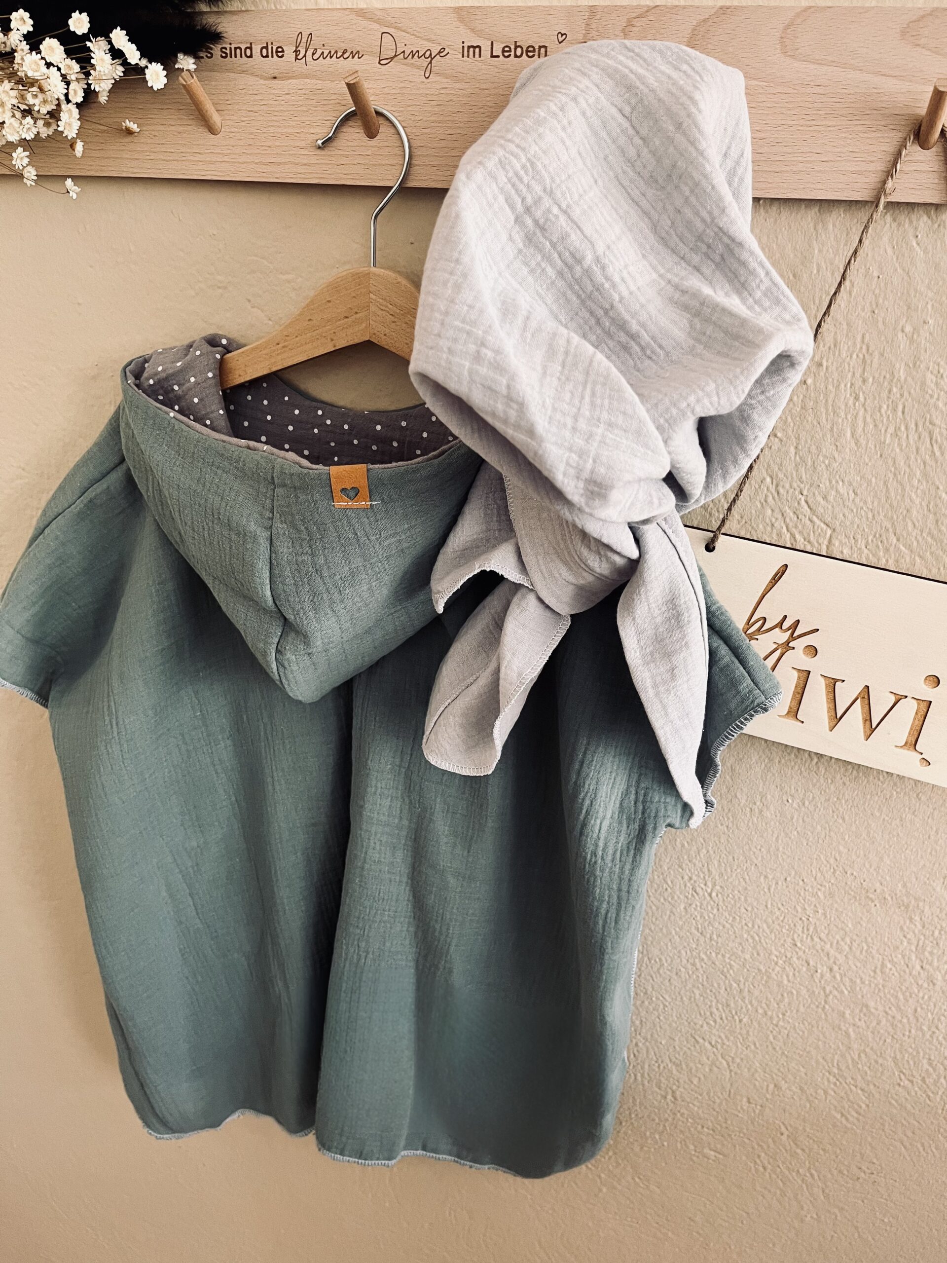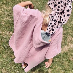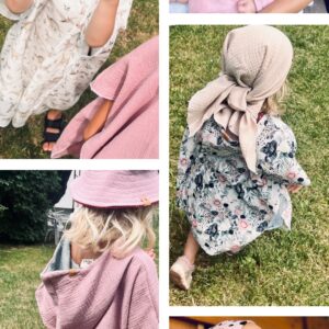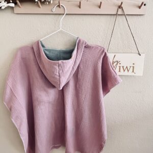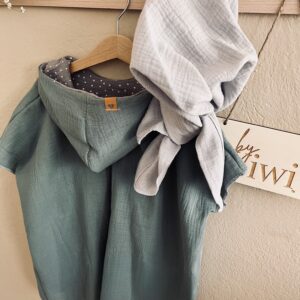 Die Ponchos sind aus 100% Musselin (Baumwolle) genäht und fallen luftig leicht. Sie trocknen schnell und haben eine praktische Kapuze , die vor intensiver Sonneneinstrahlung schützt. Die Kapuze ist zweilagig und innen mit einer farblich harmonisierenden Farbe abgesetzt (die Farbe der Innenkapuze kann Sonden Bildern abweichen, diese wird von mir passend und nach Verfügbarkeit ausgewählt).