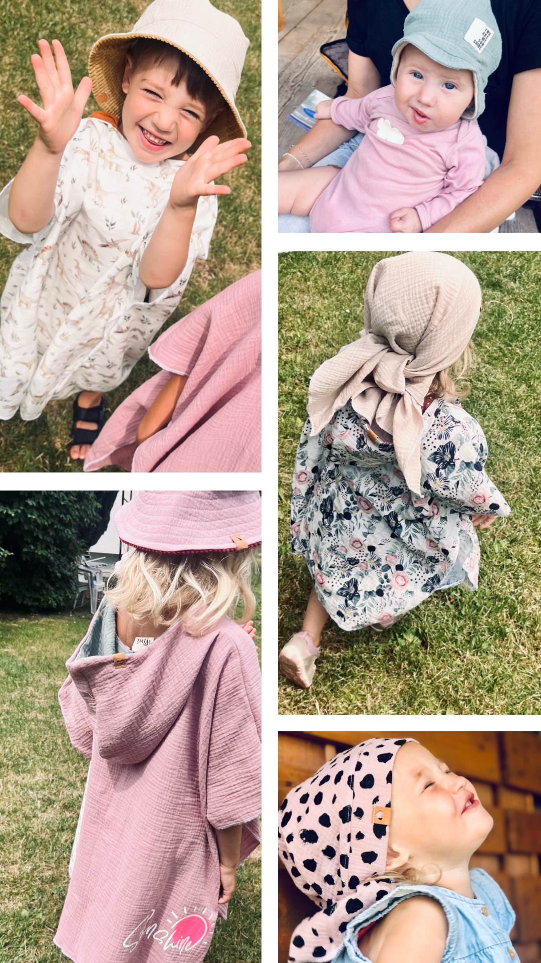 Es gibt die Badeponchos in 2 verschiedenen Größen und 6 verschiedenen Designs.